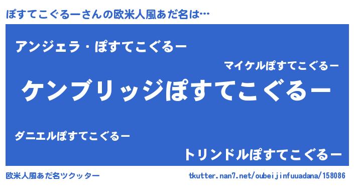 | 男性向けラノベタイトル風あだ名 | 『Re:ぽすてこぐるーから始める異世界生活』 |