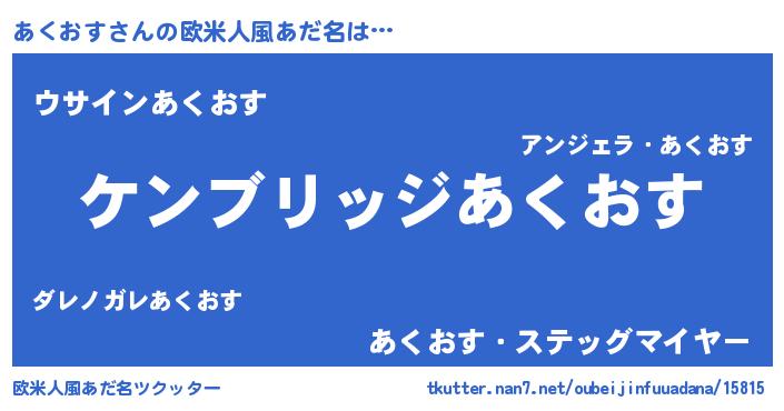 | 男性向けラノベタイトル風あだ名 | 『Re:あくおすから始める異世界生活』 |