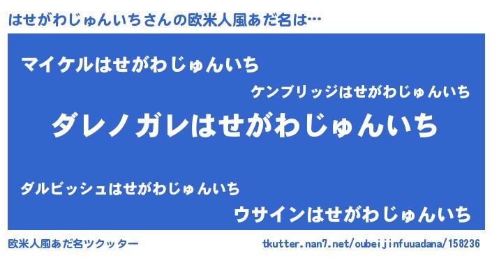 | 男性向けラノベタイトル風あだ名 | 『魔弾の王とはせがわじゅんいち』 |
