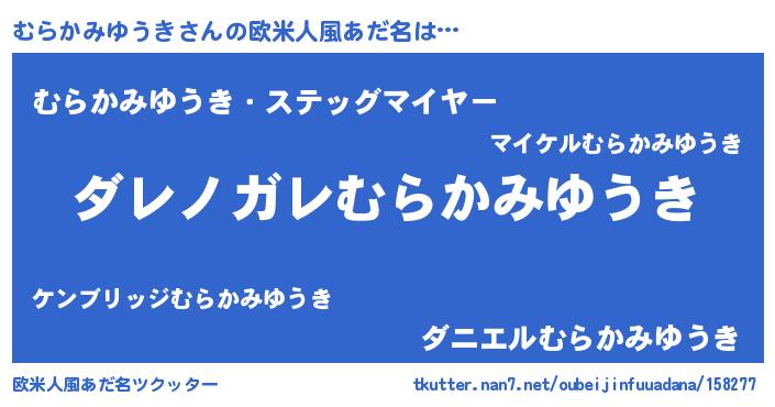 | 男性向けラノベタイトル風あだ名 | 『魔弾の王とむらかみゆうき』 |