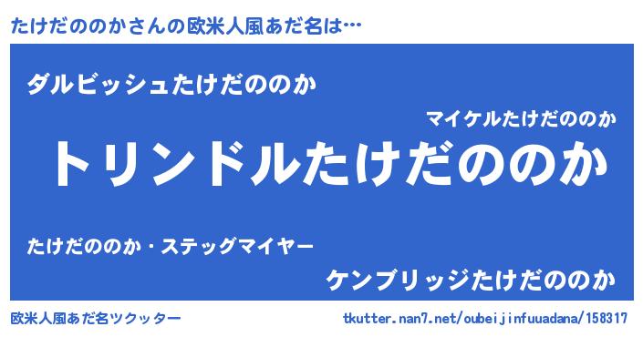 | 男性向けラノベタイトル風あだ名 | 『転生したらたけだののかだった件』 |