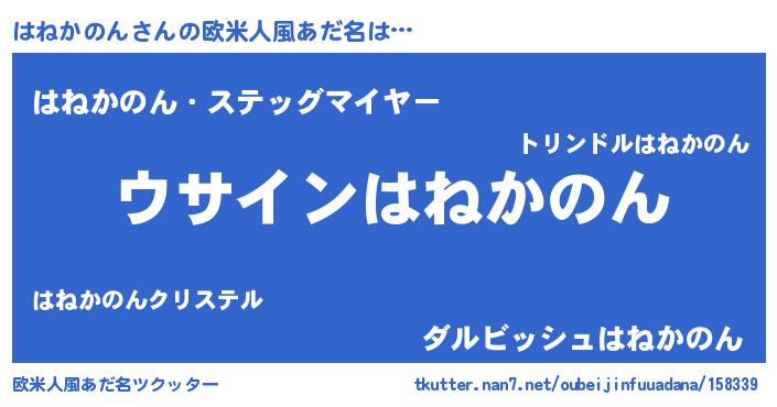 | 女子向けラノベタイトル風あだ名 | 『はねかのん様がみてる』 |