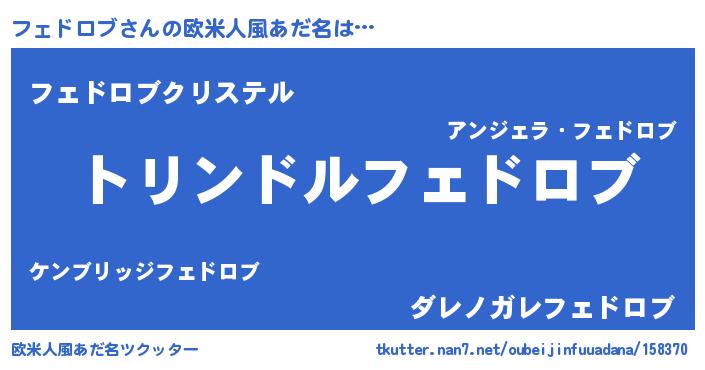 | 女子向けラノベタイトル風あだ名 | 『フェドロブの玉の輿計画!』 |