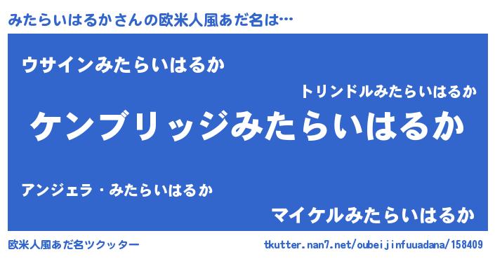 | 意味不明あだ名 | 『自称みたらいはるか』 |