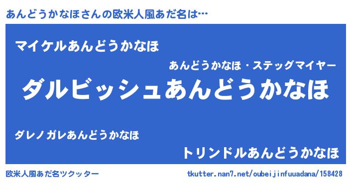 | ヒーロー風カッコイイあだ名 | 『ネオアンドウカナホ』『仮面アンダー』 |