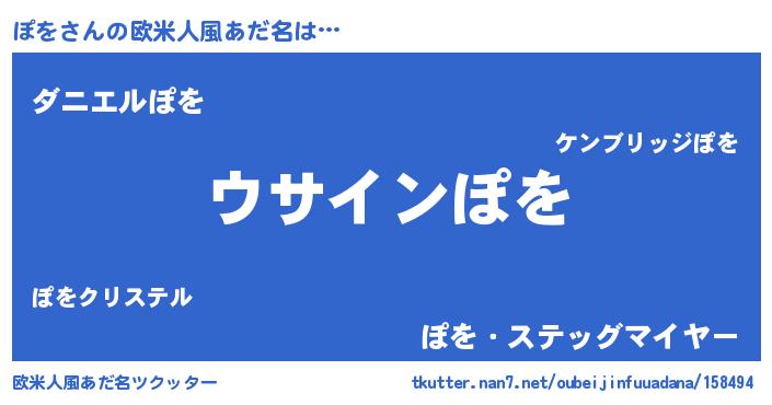 | 男性向けラノベタイトル風あだ名 | 『ダンジョンにぽをを求めるのは間違っているだろうか』 |
