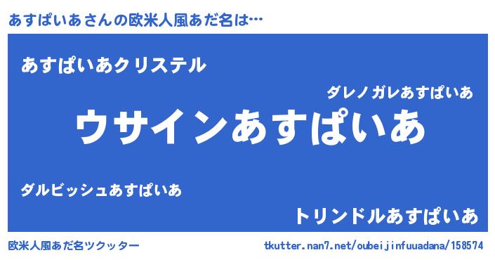 | 男性向けラノベタイトル風あだ名 | 『あすぱいあの嫁は女の子じゃないと思った?』 |