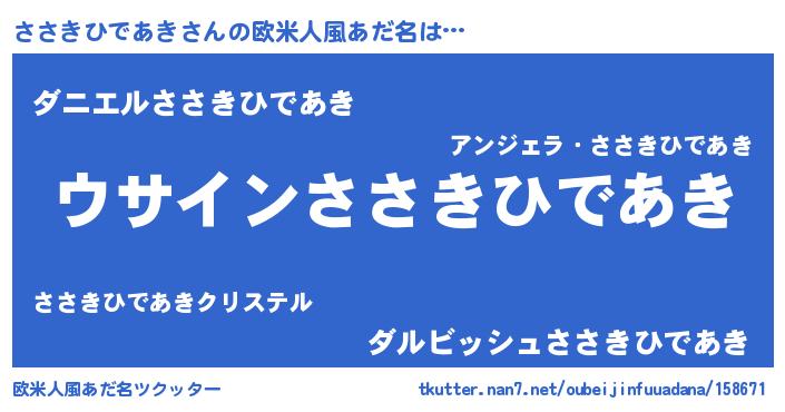 | 女子向けラノベタイトル風あだ名 | 『ささきひであきの卵を拾いまして』 |