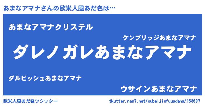| 男性向けラノベタイトル風あだ名 | 『この素晴らしい世界にあまなアマナを!』 |