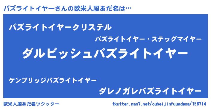 | 意味不明あだ名 | 『永久保存バズライトイヤー』 |