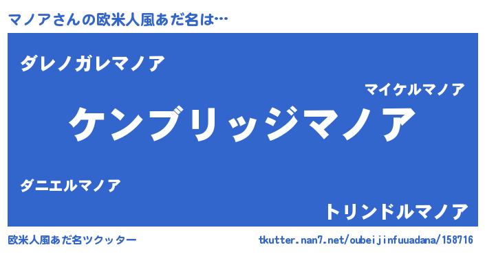 | 女子向けラノベタイトル風あだ名 | 『マノアなんてお断りですっ。』 |