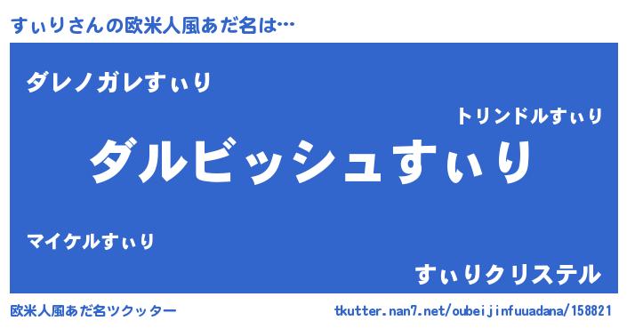 | 男性向けラノベタイトル風あだ名 | 『すぃりという概念が存在しない退屈な世界 』 |