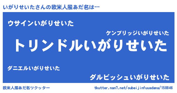 | 男性向けラノベタイトル風あだ名 | 『転生したらいがりせいただった件』 |
