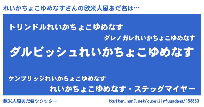 | 意味不明あだ名 | 『永久保存れいかちょこゆめなす』 |