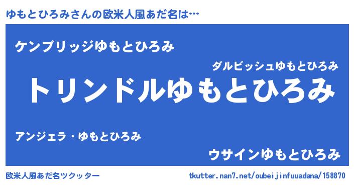 | 男性向けラノベタイトル風あだ名 | 『ゆもとひろみ~年齢イコール彼女いない歴の魔法使い~』 |