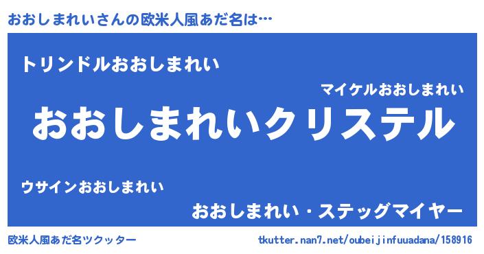 | 意味不明あだ名 | 『おおしまれいフォーエバー』 |
