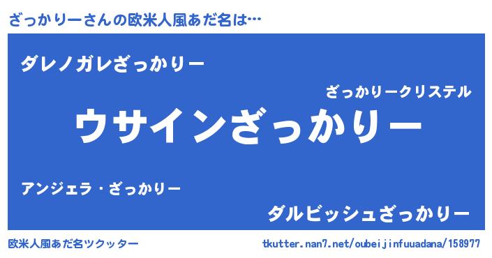 | ヘコむあだ名 | 『ざっっ子』『ざっかりー(小並感)』 |