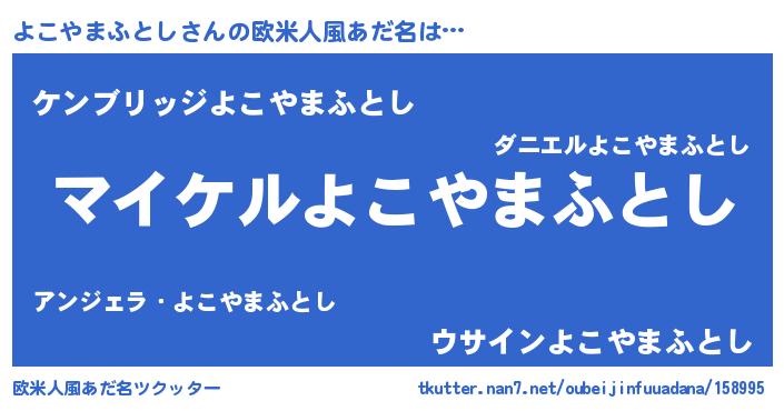 | 男性向けラノベタイトル風あだ名 | 『ヨコヤマフトシアートオンライン』 |