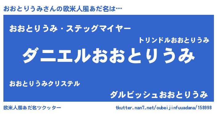 | 男性向けラノベタイトル風あだ名 | 『ノーゲーム・ノーオオトリウミ』 |