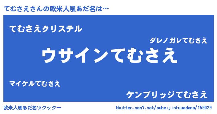 | 男性向けラノベタイトル風あだ名 | 『てむさえの嫁は女の子じゃないと思った?』 |
