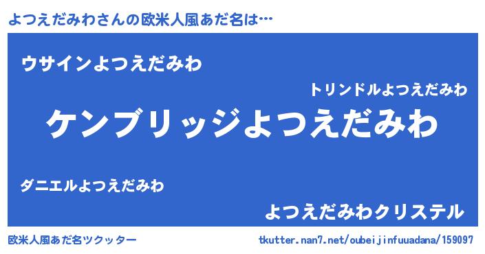 | ヒーロー風カッコイイあだ名 | 『最強戦士ヨツエダミワ』『銀牙騎士ヨツ』 |