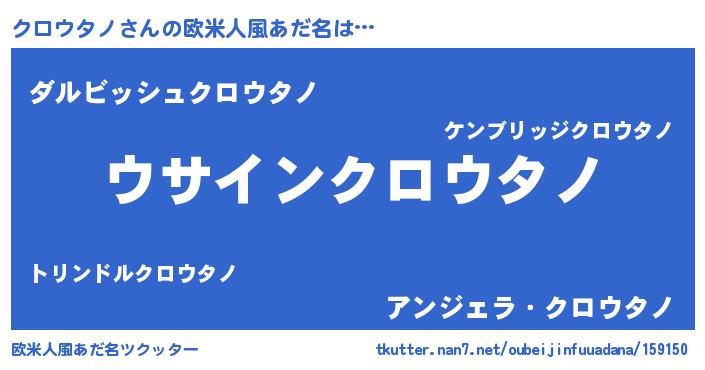 | 意味不明あだ名 | 『とにかく怪しいクロウタノ』 |