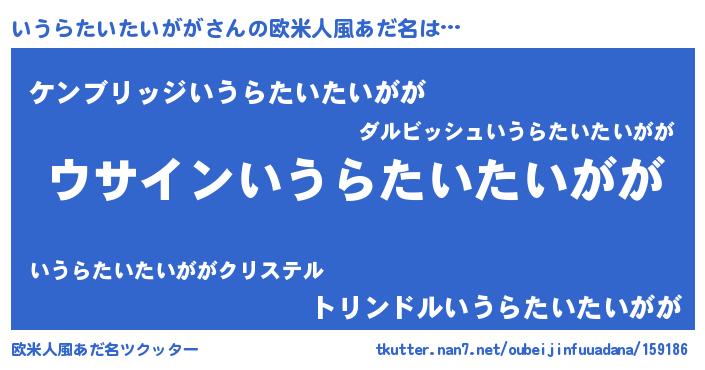 | 男性向けラノベタイトル風あだ名 | 『いうらたいたいががの嫁は女の子じゃないと思った?』 |