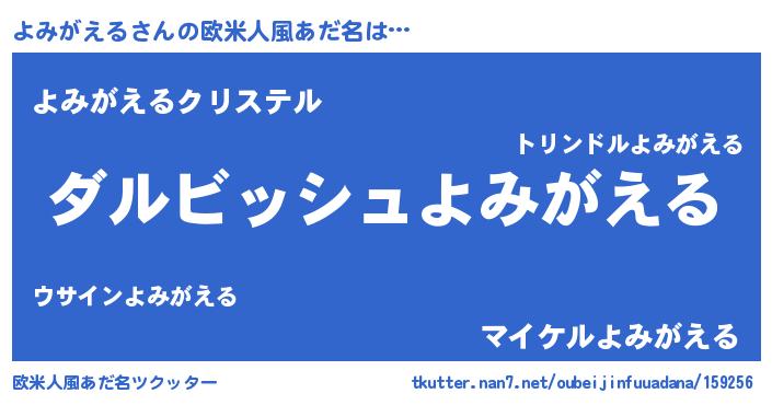 | 胡散臭い通販商品みたいなあだ名 | 『絶対に幸福をもたらす水素水…その名も「よみがえる」』 |