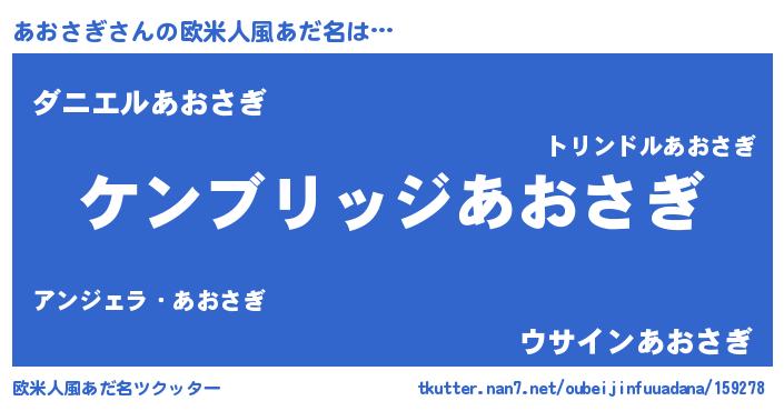| 男性向けラノベタイトル風あだ名 | 『Re:あおさぎから始める異世界生活』 |