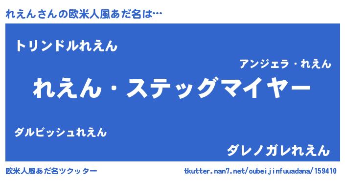 | 男性向けラノベタイトル風あだ名 | 『緋弾のレエン』『はたらくれえんさま!』 |