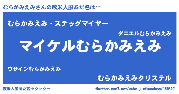 | 男性向けラノベタイトル風あだ名 | 『ムラカミエミアートオンライン』 |