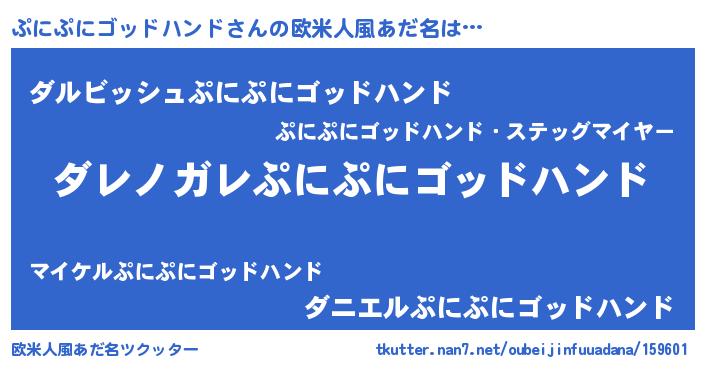 | 女子向けラノベタイトル風あだ名 | 『ぷにぷにゴッドハンドが死なない童話 林檎のぷにぷにゴッドハンドの診療簿』 |