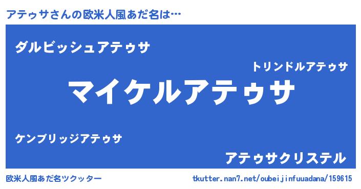 | ファンタジー風あだ名 | 『アテフェル』『アテディッシュ』 |