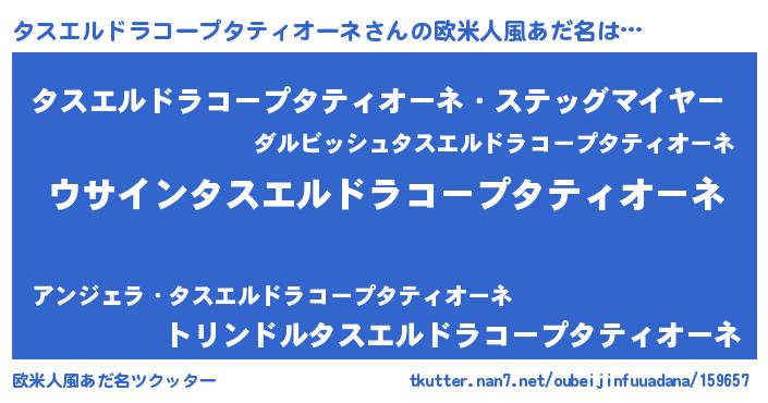 | 意味不明あだ名 | 『とにかく怪しいタスエルドラコープタティオーネ』 |