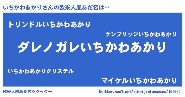 | 男性向けラノベタイトル風あだ名 | 『魔弾の王といちかわあかり』 |