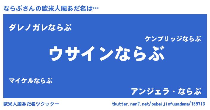 | 男性向けラノベタイトル風あだ名 | 『ならぶの嫁は女の子じゃないと思った?』 |
