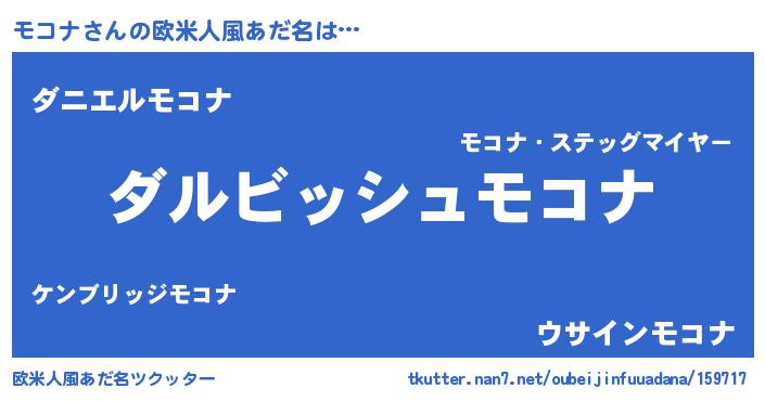 | 女子向けラノベタイトル風あだ名 | 『異世界で失敗しない100のモコナ』 |