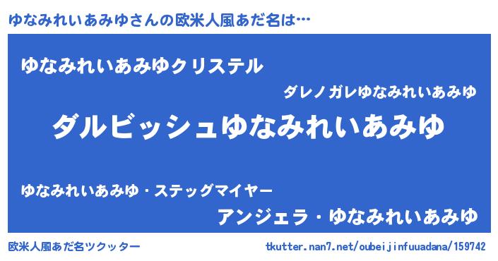 | 可愛いあだ名 | 『ゆなみれいあみゆママ』『ゆなちー』 |