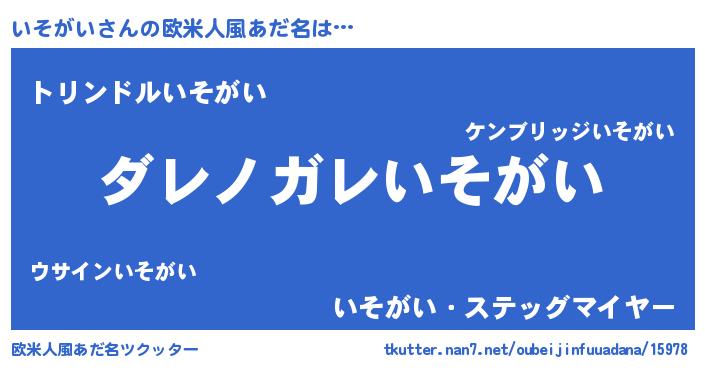 | ヘコむあだ名 | 『いそお』『いそがい(笑)』『豆乳』 |