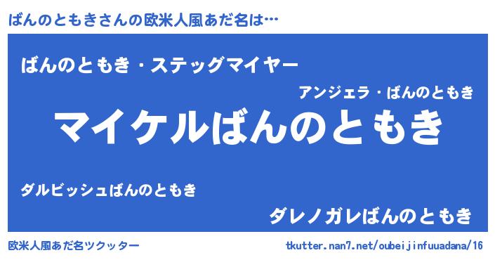 | 男性向けラノベタイトル風あだ名 | 『ばんのともきの憂鬱』 |