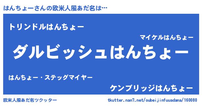 | ヘコむあだ名 | 『はんちょー(苦笑)』『はんにゅー』 |