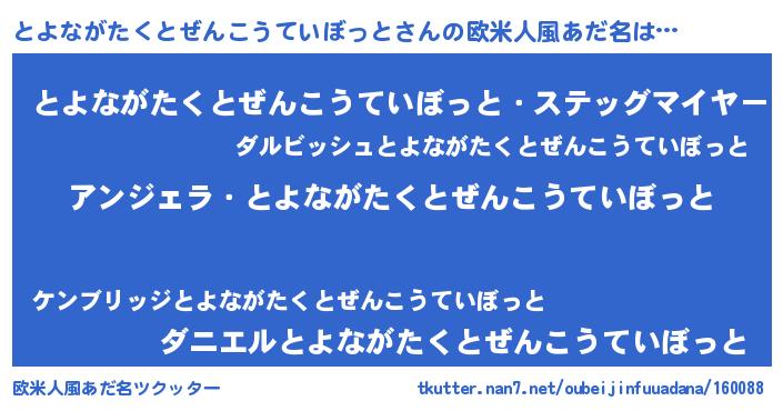 | ヘコむあだ名 | 『とよながたくとぜんこうていぼっと(遠い目)』 |