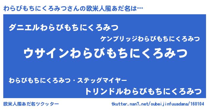 | ポケモン風あだ名 | 『ヒワラビモチニクロミツ』『ワックウザ』 |
