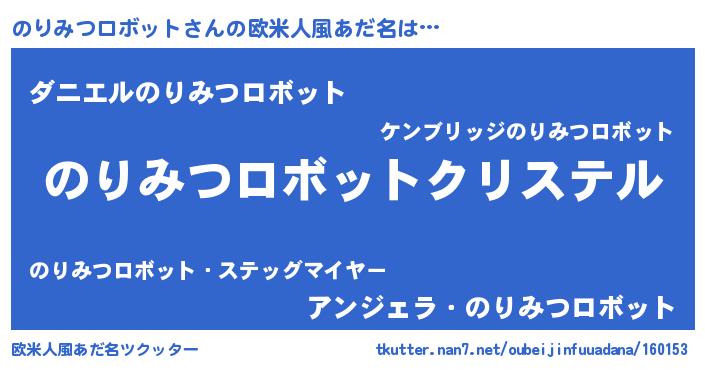 | 男性向けラノベタイトル風あだ名 | 『うちの娘の為ならば、俺はもしかしたらのりみつロボットも倒せるかもしれない。』 |