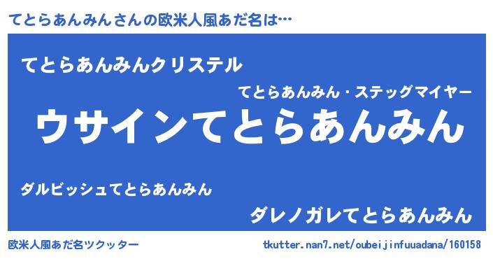 | 意味不明あだ名 | 『とにかく怪しいてとらあんみん』 |