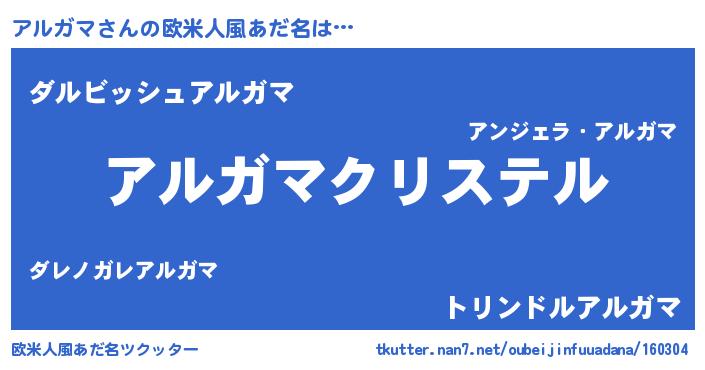 | 男性向けラノベタイトル風あだ名 | 『やはりアルガマの青春ラブコメはまちがっている 』 |