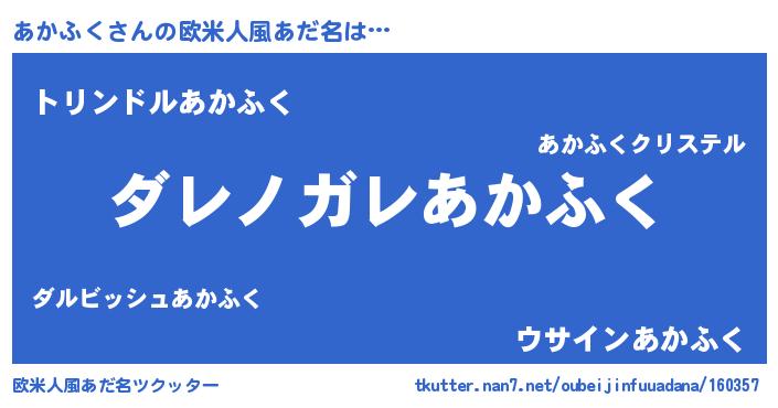 | 意味不明あだ名 | 『住所不定無職あかふく(56歳)』 |