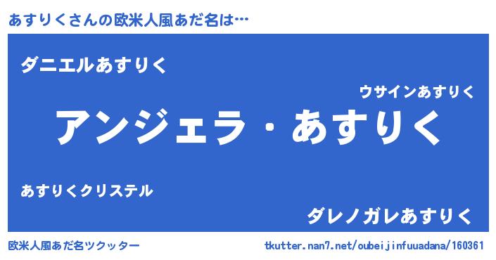 | 男性向けラノベタイトル風あだ名 | 『はたらくあすりくさま!』 |