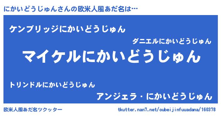 | 男性向けラノベタイトル風あだ名 | 『ニカイドウジュンアートオンライン』 |
