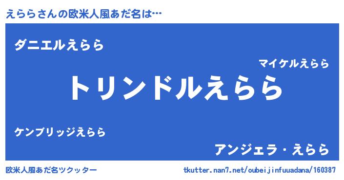 | 女子向けラノベタイトル風あだ名 | 『えららの玉の輿計画!』『闇のえらら』 |